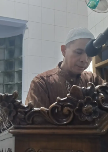 Ustaz Baidowi memberikan tausyiah menjelang berbuka di Masjid Al-Ukhuwah, beliau membahas tafsir penciptaan manusia sebagai khalifah di bumi.
