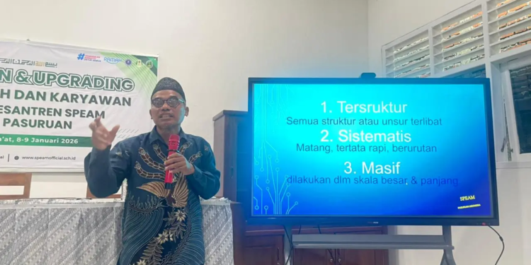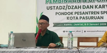 Pasuruan, 9 Januari 2026 – Pembinaan dan Upgrading Ustadz–Ustadzah serta karyawan Pondok Pesantren SPEAM Kota Pasuruan diisi dengan pemaparan materi bidang pendidikan oleh Dr. KH. Abu Nasir, M.Ag.. Dalam kesempatan tersebut, ia menegaskan pentingnya membentuk pendidik yang tidak hanya kompeten secara keilmuan, tetapi juga memiliki karakter ideologis dan spiritual yang kuat.
