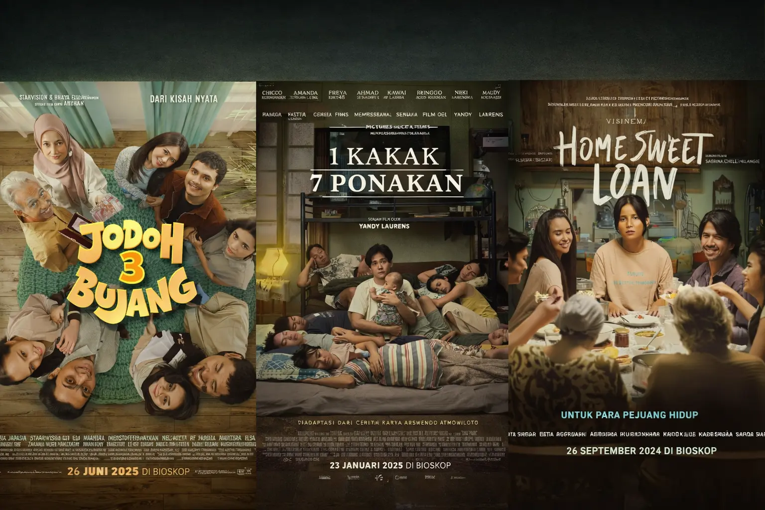 Di titik inilah, sinema Indonesia belakangan ini seolah menemukan nadinya yang paling berdenyut. Film-film seperti Home Sweet Loan, 1 Kakak 7 Ponakan, hingga Jodoh 3 Bujang hadir bukan untuk menawarkan mimpi-mimpi besar yang spektakuler, melainkan untuk memotret realitas tentang bagaimana cara bertahan hidup tanpa terlihat rapuh di hadapan dunia.